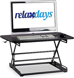 Relaxdays, noir bureau assis-debout, Poste réglable en hauteur, Station travail ergonomique, Table ordinateur, métal, MDF, 16 x 80 x 51 cm