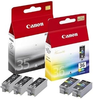 Lot de 5 cartouches d'encre Canon Pixma IP 100 PGI35, CLI36, 3 noires, 2 couleurs
