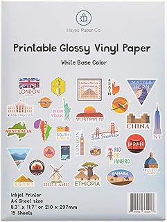 Papier Hayes, Papier Autocollant Brillant Blanc en Vinyle pour Imprimante à Jet d’encre, 15 Feuilles Premium en Vinyle Imperméables, Format A4