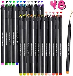 ARTOYS Stylos Pointe Fine 48 Couleur Sac de Crochet Ligne Stylo de Fibre Noire Fine Ligne Stylo Livre à la Main à Base d'eau Stylo Croquis,pour Débutants Graffiti DIY Art Esquisse,Noël d'anniversaire
