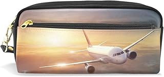 Avion Dans Le Ciel Au Coucher Du Soleil Portable PU En Cuir Crayon Cas De L'école Stylo Sacs Papeterie Pochette Grande Capacité Maquillage Cosmétique Sac