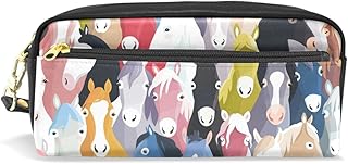 Coosun Poney Motif coloré Dessin animé Chevaux Portable Cuir PU Trousse d'école Pen Sacs papeterie Pouch Case Grande contenance Sac de maquillage