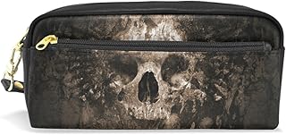 Bennigiry Tête de mort Trousse Portable Stylo Organiseur Sac d'école Pen Sacs en cuir PU Grande capacité Sac de maquillage