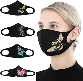 Lot de 4 masques 5D à faire soi-même, motif dessin animé, peinture diamant, coton, noir, strass, cadeaux pour enfants, hommes et femmes, lavables | anti-poussière | réutilisables