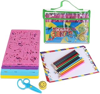 OULII dessin pochoirs avec des modèles divers artisanat créatif peinture pochoirs ensemble outil Art éducatif pour les enfants, cadeau de voyage d'apprentissage