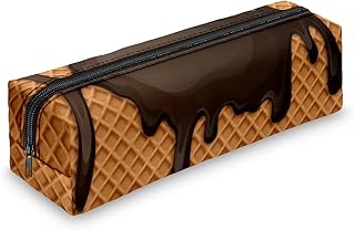 Trousse carrée emoji Imprimé Stylo Organiseur holographique Voyage papeterie Pouch Fermeture Éclair (Choco Sauce Waffle)
