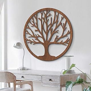 Silhouette d'arbre décoration murale en bois placage en bois d'acajou Arbre de vie, symbole de la nature : force, sagesse, fertilité Ø 60 cm