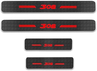 Pour 308 4D Seuil de Porte Voiture Fibre de carbone Réfléchissant Autocollant,Protection Seuil Pédale Protéger Car Styling 4 Pièce Rouge