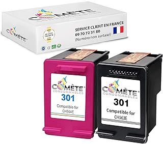 Comète Consommable - 2 Cartouches d'encre 301 (CH563E + CH564E) Compatible pour HP Deskjet 1000 1010 1050 1510 1512 2050 2050A 2510 2540 3050 Envy 4500 4502 4503 5530 5532 Officejet 2620 2622 4630